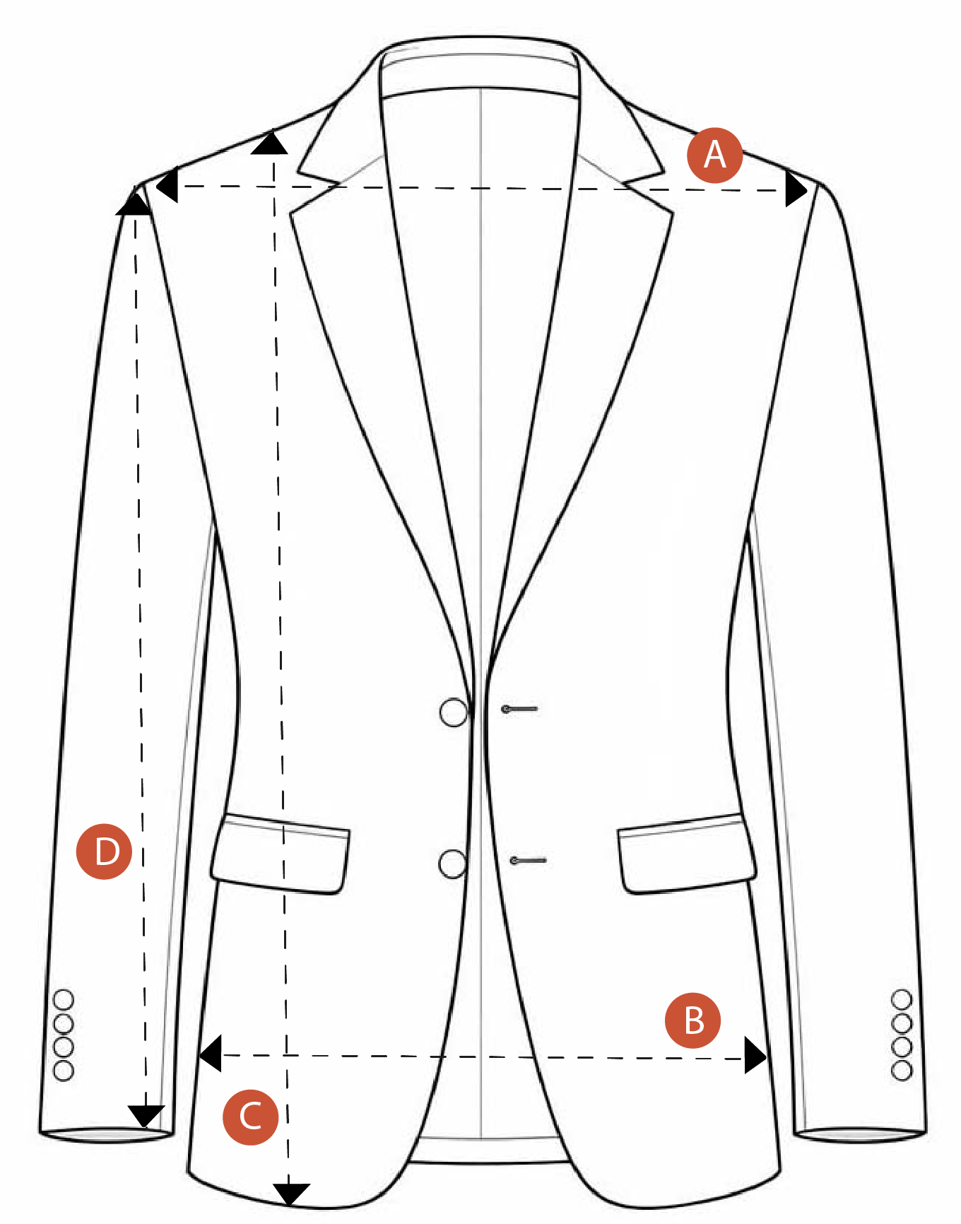 | Talle | A Ancho hombros | B Ancho | C Largo | D Largo manga |