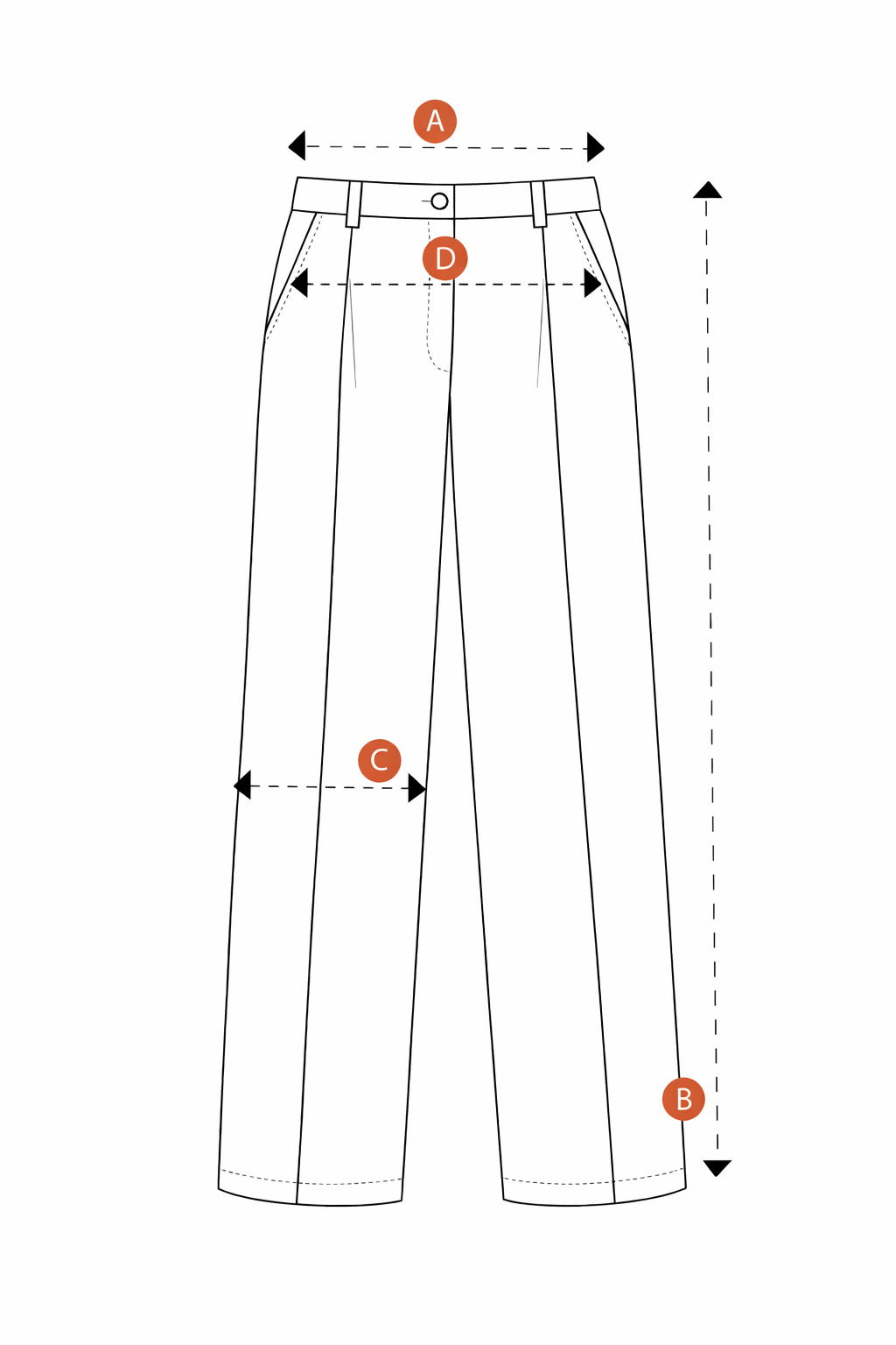 | Talle | A Cintura | B Largo | C Ancho pierna | D Cadera |